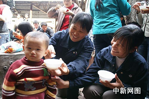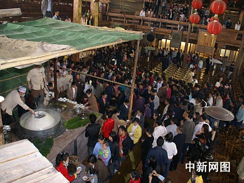 “吃湯圓,賣湯圓,一碗湯圓三毛錢。”在動聽的歌謠聲中,游客臉上都帶著興奮的笑容,按順序排隊等候工作人員的分吃湯圓。記者粗略的估計了一下,10余工作人員耗時一個多小時才把大湯圓分完。