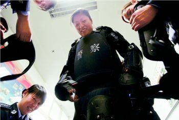 將30多斤的防暴服穿在身上不是件容易的事,需要隊(duì)員們的共同協(xié)作,而每周這樣的訓(xùn)練不下三次。