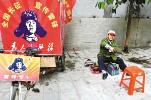 “不管怎樣,我都要干到2013年,也就是毛澤東同志"向雷鋒同志學習"題詞50周年的時候,我要幫1000名殘疾人或下崗職工實現自強自立。”風餐露宿9年,這位憨實的四川漢子并不覺得長,他甚至把要教會1000人擦鞋的志向做成一塊鐵牌掛在了三輪車上。(文/記者周磊圖/黃澄鋒)