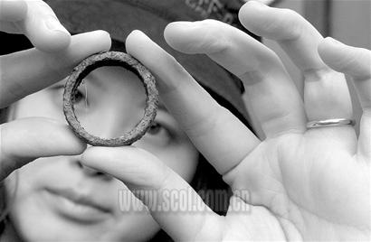 當(dāng)?shù)靥菏剿阉鞯降?0遍,割掉的草再補(bǔ)充探測兩遍后,博物館該下班關(guān)門了。她默默地和探測到的“戰(zhàn)利品”——釘子,金箔,和那個(gè)碩大的生滿鐵銹的戒指合影留念。強(qiáng)忍多時(shí)的眼淚終于從疲憊的眼中滑落。