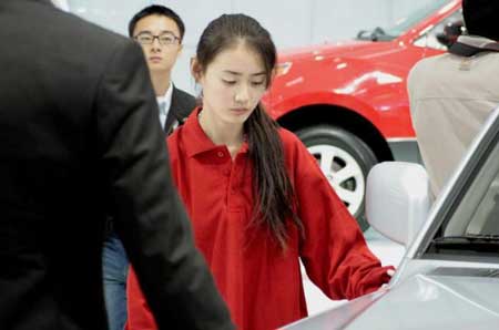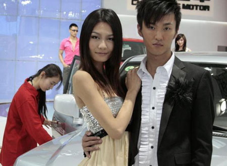 勞動讓紅衣MM在眾多車模中突圍而出。