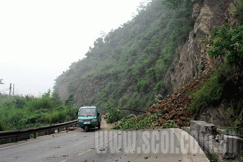 5月12日17點11分,都江堰往汶川方向的道路出現大面積山體跨塌