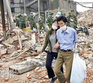 報道說,作為重災(zāi)區(qū)的綿竹,其受災(zāi)最嚴(yán)重的是漢旺鎮(zhèn),而漢旺鎮(zhèn)最多人被埋的地方即綿竹東汽中學(xué),該學(xué)校主樓一面墻和教室完全倒塌,只剩下幾個空架子。