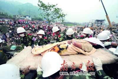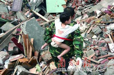 “我一定要找到家里人,死也要死到一起。”在綿陽市開出租車司機胡女士說。出事后,她開車前往北川找她的愛人。當天下午5點多,她趕到時小縣城已面目全非。胡女士徒步來到愛人上班的新城區(qū),在廢墟上大聲叫著丈夫的名字。終于,丈夫有了回應:“我在這里,背上有塊大石頭!”胡女士蹲下來說:“不要怕,很快有人來救我們了。”為了讓愛人不因為恐慌和失血過多昏睡過去,胡女士跪在地上和愛人談起往事,不斷鼓勵、安慰他。半小時后,巡邏人員發(fā)現(xiàn)他們,胡的愛人獲救。而胡女士本人,則因為長時間跪在一塊碎玻璃上,被割掉一大塊肉。(作者:記者胡亞柱張蜀梅)