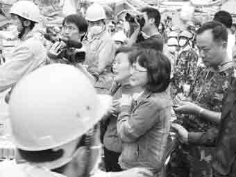 這時(shí)記者碰到一位從貴州遠(yuǎn)道而來的母親龍金玉,她20歲的兒子蔣雨航埋在映秀一處坍塌的建筑里,生死不明。龍金玉哭著說,她從13日就得知兒子被埋了,新聞里和兒子單位的人一直說道路不通,她已經(jīng)連續(xù)4天幾乎沒吃任何東西了。15日她和家人到達(dá)成都,她再也不能等了,今天早上一個(gè)人偷偷溜出來,不管道路通不通,一定要到映秀。