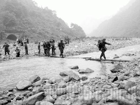 “我們在這里等候團(tuán)長和戰(zhàn)友們回來,他率領(lǐng)部隊(duì)正引領(lǐng)數(shù)百災(zāi)民從高山密林中向漢旺轉(zhuǎn)移。”前日19時(shí),有著“烏蒙鐵軍”之稱的解放軍某部團(tuán)政委曾祥明站在亂石嶙峋的綿陽河上游河谷中,十分焦急地告訴記者,他們已與團(tuán)長周宏許所率領(lǐng)的數(shù)百官兵失去聯(lián)系10多個(gè)小時(shí)了。
