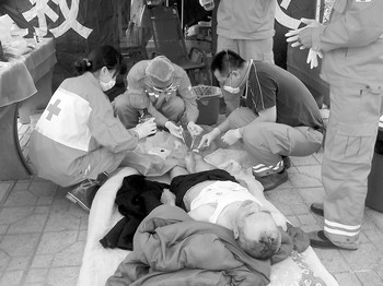 昨日,(四川省)彭州市人民醫(yī)院的重傷員手術(shù)基本完成,湖南醫(yī)療隊(duì)分批下到鄉(xiāng)鎮(zhèn),深入災(zāi)區(qū)最前線進(jìn)行救治工作。來自長沙市三醫(yī)院的任朝暉等醫(yī)務(wù)人員,驅(qū)車數(shù)百公里,步行3小時(shí),趕到位于白鹿鎮(zhèn)的3個(gè)災(zāi)民點(diǎn),為400余名災(zāi)民進(jìn)行救治、防病。