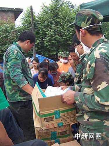 二十日,協(xié)助社區(qū)組織受災(zāi)群眾領(lǐng)取救災(zāi)物資時,有個小孩不停地哭泣,在一旁的聯(lián)隊隊員代慶平趕忙安慰逗他別哭。幾天以來,救助點附近的受災(zāi)群眾已與這支救援隊變成了互相關(guān)心的鄰居。