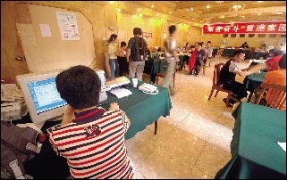 國土局是大廳最受人矚目的角落,因為那兒不僅有一臺電腦,還有唯一的一臺傳真機(jī),這些是綿陽市國土局專門送來的。工作人員尹艷說,她也只能用電腦打一些報表,因為沒有公章,只能在上面簽名。