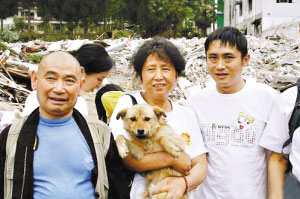 通過(guò)智富,“愛(ài)之家”找到了黃色雜有黑毛的中華田園犬“前進(jìn)”和黃白色長(zhǎng)毛、背上有一撮黑毛、不足一歲的喜樂(lè)蒂狗“乖乖”。徐先生說(shuō),在將“前進(jìn)”和“乖乖”帶離災(zāi)區(qū)時(shí),當(dāng)?shù)睾芏啻迕穸技娂妵蟻?lái)要求和兩只“義犬”合影。