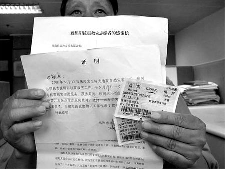 昨日中午,池先生向記者出示了身份證、退伍軍人證、往返車票及綿陽市志愿者協會開具的證明和感謝信。池先生表示,雖然他違反勞動紀律在先,但是公司也不能扣下他之前的加班費。