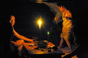 入夜,電路無法覆蓋的山上臨時安置點,居民只得秉燭談心。