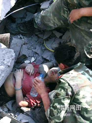 到下午5點鐘左右的時候,搜救官兵已經(jīng)能夠看到袁藝的頭發(fā)了,這讓所有的人不覺精神為之一振。為了使袁藝能夠保持清醒,官兵們不時的陪說話。交談中,孝順的袁藝一直在打聽父母和家人的情況,“他們肯定想不到我還活著”,袁藝話中透露著對劫后余生的無限欣喜與感動。看到了官兵們救援的辛苦,堅強的袁藝反倒不住的安慰不敢加快挖掘速度生怕碰到她傷口的官兵們:“你們加油,我也加油,我不怕疼......”