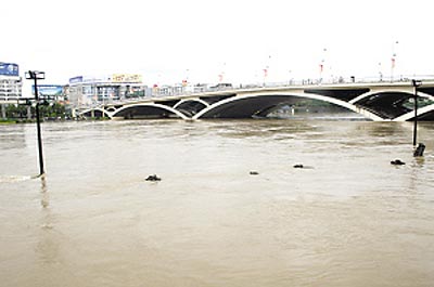 6月9日下午5時,兩江四湖的文昌橋碼頭被洪水淹沒。本報記者 鄧振福 唐曉燕攝