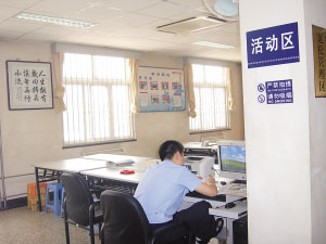 除了值日生外,其他人都得睡覺。午休結(jié)束后,可以到房間外的活動室讀書看報,也可以參加一些打掃衛(wèi)生的勞動。16時45分開晚飯,吃的仍然是饅頭稀飯咸菜。