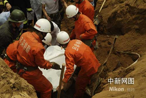 第一名遇難者的遺體被找見時的情形。張雷杰 渠升飛 攝