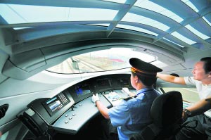 6月24日上午,國產(chǎn)“和諧號”CRH3型動車組在京津城際鐵路運行試驗中創(chuàng)出394.3公里的時速。試驗過程中,動車組列車各系統(tǒng)運行正常,列車平穩(wěn)舒適。這意味著京津城際鐵路線橋質(zhì)量、動車組性能、各系統(tǒng)間的配合已達到世界一流高速鐵路標準。