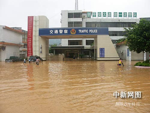 縣交通警察辦公樓坐落在洪水中。