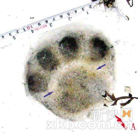 劉里遠(yuǎn)對(duì)此也作了解釋?zhuān)簭恼掌?見(jiàn)圖)可見(jiàn)前面那四個(gè)腳趾都不同程度地向前凹進(jìn)。這是因?yàn)槔匣⒃谔_時(shí),先抬起腳跟和腳掌,并且整個(gè)身體向前移動(dòng),則其腳趾尖在雪中向前推進(jìn),形成那樣的內(nèi)突凹陷。另外,我們還看到腳印的前沿有一明顯的缺口,顯然是虎腳最后離開(kāi)時(shí)拖拽而成。劉認(rèn)為這是一個(gè)典型的行進(jìn)中的老虎腳印,幾乎是不可能人工模擬出來(lái)的。