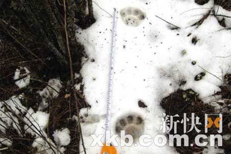 據(jù)稱這是雪地上留下的一連串虎腳印
