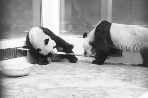 前晚,“希望”和“偉偉”住進(jìn)武漢動(dòng)物園熊貓館后,先花10余分鐘把臥室嗅了個(gè)遍,熟悉環(huán)境后,抱著飼養(yǎng)員送進(jìn)的竹子吃起來。臨睡前,飼養(yǎng)員給它們送進(jìn)一盆水,喝光后,兩個(gè)小家伙對鋁合金水盆產(chǎn)生了濃厚興趣,把它當(dāng)玩具拖過來,拉過去,搶到手后就用嘴咬,將嶄新的水盆咬得像篩子。