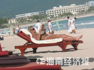 記者連日來在大東海景區(qū)看到,有外國女游客在沙灘上或一人或三五成群,穿著泳褲裸露上半身在沙灘的躺椅上曬太陽、看書,泰然自若。或許是因沒趕上裸泳時間,沒看到裸泳者。