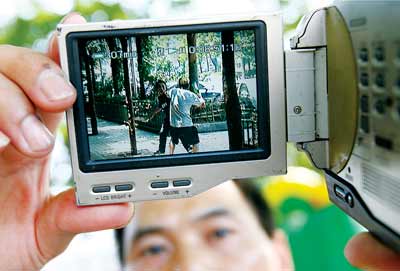 高新區(qū)科園三路某超市一名員工,發(fā)現(xiàn)一小偷偷走兩瓶洗發(fā)液后,追出500米左右并與之在街頭搏斗起來。恰在此時,一位市民用DV在旁邊拍下了兩人搏斗的全過程,現(xiàn)場40余名圍觀者還以為他們在拍戲并鼓掌高呼“加油”。昨天,石橋鋪派出所對提供錄像幫他們破案的這名DV男子大加贊賞,并開始對此案著手調(diào)查。