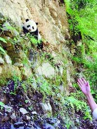近日,馬先生一行5人來到太白縣考察生態(tài)農業(yè)項目,7月5日上午,他們從太白縣城出發(fā),前往黃柏塬鄉(xiāng)。上午10時30分許,車駛出30多公里時,馬先生看到路邊有群人圍著什么東西,順著眾人的視線看到,離地面大約4-5米的崖壁上竟有一只大熊貓。一行人喜出望外,他們從來沒有想過自己還有緣看到野生大熊貓,于是放下手頭的工作加入到守護大熊貓的行列中。