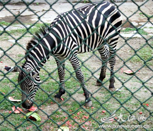 16日,記者在南昌市動(dòng)物園看到,老虎正抱著大冰塊睡著大覺。“天氣太熱,我們每天都要消耗近600公斤冰塊為5只老虎降溫。3只大象每餐也要吃掉約75公斤西瓜。”飼養(yǎng)員告訴記者。記者看到,河馬喜歡泡在水池里,熊貓則躲在空調(diào)房里愜意地打著盹,大象、斑馬忙著啃西瓜。