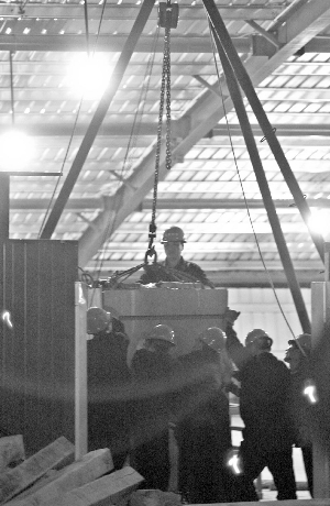整個過程,不能發生一點傾斜。“我們不知道里面有些什么,稍一傾斜,不但有滑落的危險,更重要的是怕里面的東西受到損壞。”