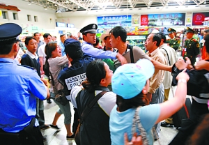 就乘客所言的“遭南航一工作人員辱罵”的情況,袁權(quán)說“沒有這回事”。機場一警官稱,當時并非警民沖突。經(jīng)調(diào)查,系南航工作人員說了一些過激的言辭,導(dǎo)致乘客情緒失控,當時有乘客做出了一些過激的行為,還有些人沖進服務(wù)點推翻電腦,但電腦未損壞。