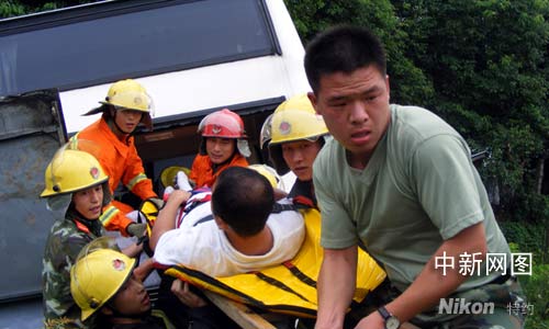 事后根據高速交警反映,出事客車上三十余名乘客中有七、八名乘客只是擦傷,已經在附近醫院治療,并沒有大礙,而一名五十歲左右的中年婦女頭部受傷嚴重,還進一步搶救之中。