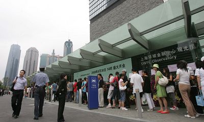 昨天下午1時30分,環球金融中心觀光廳入口外已排起了長龍。排隊登高的不乏外國游客,而本地市民并不多。