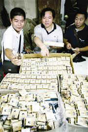 據調查,當晚查獲的新型卷煙接嘴機是由李雪君團伙剛從福建托運至武漢,而現場查獲的假冒高檔“黃鶴樓”卷煙,均是由7月27日在漢陽花園村繳獲的煙機生產。據交代,他們更換煙機的目的,是提高生產效率和制假水平。