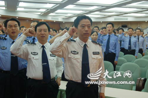 廬山公安局局長涂林帶領廬山全體民警重溫入警宣誓儀式
