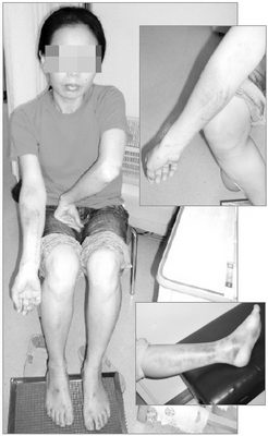 3名女工說(shuō):由于長(zhǎng)時(shí)間戴手套、穿膠鞋工作,手腳不透氣,6名女工均不同程度地染上了腳氣、灰指甲等疾病。而洗衣時(shí)要接觸被化學(xué)物品污染的工作服以及洗衣藥品,她們的皮膚也都受到不同程度的灼傷。