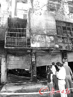 事發的這家裝飾材料商行位于惠城區麥地麥岸路12號街邊一樓。記者昨天上午在現場看到,這個商鋪寬約二三十米,卷閘門及里面的貨物及摩托車全部燒成了廢鐵,樓上外墻都被熏黑了。二樓的窗口被消防隊員撬開以便于救人。