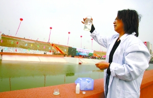 下午2時,河北水流進團城湖,北京市水務局和北京市南水北調辦公室將100個寫有參與南水北調建設工作者名字的“標志球”投入到團城湖出口閘!皹酥局纤闭{外流域水正式啟用”,北京市水務局相關負責人表示,將會把這100個“標志球”永久珍藏起來,“因為它們見證了這個歷史性的日子! (記者杜丁)