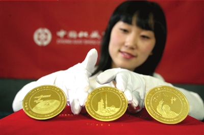 昨天,紀念神舟七號發射成功、中國人首次實現太空行走的金鑲玉紀念章在徐悲鴻紀念館面世。由中國收藏家協會監制的該款紀念章一套3枚,每套用300克999純銀、鍍6克999純金、鑲3枚和田玉玉環制成。紀念章直徑60毫米,厚5毫米,限量發售1000套,每套售價6800元。(記者: 歐陽曉菲 李琦)