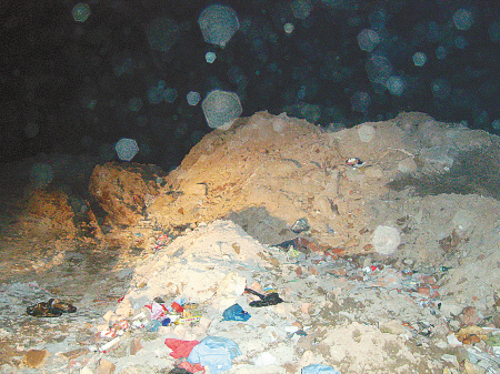 為防備拉土車亂倒垃圾,二府莊村民用混凝土樁和黃土堆將村道封閉起來,試圖阻擋拉土車通行。但即使這樣,也無法擋住拉土車。楊長水說,拉土車主們見村子里設(shè)了路障,“拉土車主竟找來裝載機(jī),裝載機(jī)在前面開路,一轟油門就把路障推出上百米,我們實(shí)在沒轍了,只好組織村民每晚巡查,沒想到他們這么猖狂……”