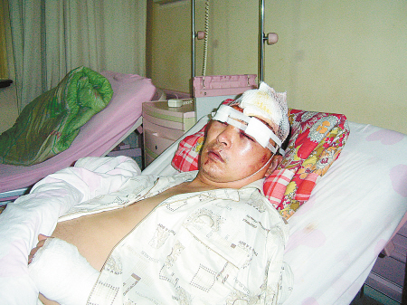 “就是那幫晚上在村里亂倒建筑垃圾的家伙!他們沖上來認(rèn)準(zhǔn)了我就打,還惡狠狠地撂話說要制服我這個(gè)不怕他們的人!”昨晚,正在醫(yī)院接受治療的魚化寨二府莊村治保主任項(xiàng)建宏身上纏滿了繃帶,他睜著青腫的雙眼,向記者訴說不久前發(fā)生的那一幕時(shí)仍是異常氣憤。