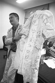 此外,川大華西醫(yī)院還將近百件抗震救災(zāi)醫(yī)療隊(duì)的服裝等進(jìn)行了捐贈(zèng),其中包括來自黑龍江、江西、北京等20多個(gè)省市。廖志林表示,地震后有30多個(gè)醫(yī)療隊(duì)進(jìn)駐華西醫(yī)院醫(yī)治傷員,這次從全國各地郵寄而來的醫(yī)療服,是通過書信號(hào)召他們捐贈(zèng)出來的,希望建川博物館能全面展現(xiàn)抗震救災(zāi)過程中各方面眾志成城的場景,目前已收集完成了20多個(gè)醫(yī)療隊(duì)的相關(guān)物品!耙患奈镆粋(gè)故事,我們?cè)谧龅卣鸩┪镳^的時(shí)候更注重收藏感動(dòng)人心的背后故事。”何新勇表示,薛梟的故事讓無數(shù)的中國人記住了他,博物館收藏其簽名的可樂罐主要是希望為參觀者呈現(xiàn)一個(gè)不可磨滅的記憶,就像給妻子最后尊嚴(yán)的摩托車、為搭板房勞累而犧牲的武文斌的雕像一樣。博物館一直想尋找的是那些飽含故事的實(shí)物,“電視上不是說,有位媽媽為保護(hù)自己的孩子不幸遇難,她在手機(jī)上留下了‘親愛的寶貝,如果你還活著,請(qǐng)記住媽媽愛你’的短信,但苦苦尋覓這部手機(jī),都沒有結(jié)果。讓我們非常遺憾!