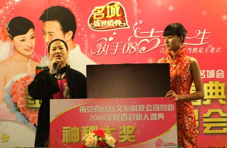 據(jù)承辦這次活動的負責人袁衛(wèi)國介紹,目前新人報名人數(shù)踴躍,已經(jīng)接近百對,其中,在這次四川地震中的兩對抗災(zāi)英雄也將參加本次集體婚禮;有眾多贊助商積極參與其中,他們還將邀請品牌企業(yè)老總和福布斯上榜人物在秦淮河畔、明城墻下,與所有新人共同見證百年愛情,由于婚典現(xiàn)場活動中,有祈福許愿、放飛風箏、水景表演、煙火晚會等20多個浪漫經(jīng)典的環(huán)節(jié),會盡量邀請到海內(nèi)外知名人士親身參加其中,與新人進行零距離的接觸。
