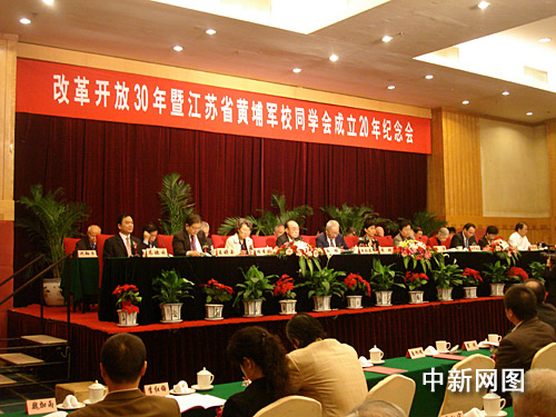 中新網南京十月十六日電 (記者 丁梅)今天上午,來自江蘇省黃埔同學及已故黃埔軍校老校友的親屬代表共一百八十人在此間隆重聚會,紀念改革開放三十年暨江蘇省黃埔軍校同學會成立二十周年。