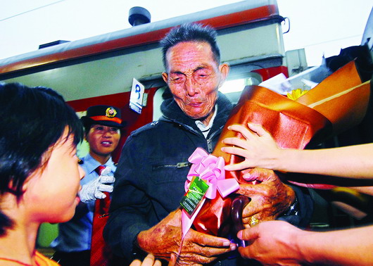在火車站廣場,本報組織進(jìn)行了一場簡短的歡迎儀式。老人一開口,便是未改的常德鄉(xiāng)音:“這次回家太不容易了……”湖南華中電力建設(shè)開發(fā)集團(tuán)有限公司負(fù)責(zé)人夏偉祝福老人身體健康,這也代表了所有關(guān)注老兵回鄉(xiāng)事件的志愿者、網(wǎng)友和熱心讀者的心聲。