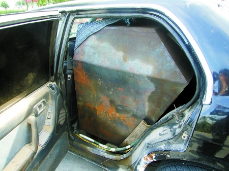 轎車(chē)后排成了油桶