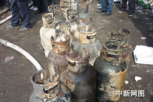 據悉,著火區域位于居住區的中央位置,火勢正向周圍的棚戶房及鄰近的廢品貨存倉庫蔓延,更為危險的是,火場中到處可見正在噴火燃燒的煤氣瓶,一旦這些煤氣罐爆炸燃燒,后果將不堪設想。