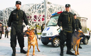 目前,奧運中心區(qū)共有30名民警和60名保安員負責巡邏,每天還從巡邏隊調(diào)用兩只警犬。而隊里除了有20多輛電動自行車、7輛普通警用電瓶車以外,還有2輛帶警犬籠的警用電瓶車,這在全市是獨一無二的。記者看到,這種電瓶車的后座上安裝著方方正正的警犬籠,平時民警駕駛電瓶車巡邏,警犬就趴在犬籠里跟著轉(zhuǎn)悠,車停下以后,民警再牽著警犬步行巡邏。而身穿作訓服的巡警牽著威風凜凜的德國黑貝警犬,也成為奧運中心區(qū)里一道獨特的“風景線”,很多游客都爭相與他們合影。
