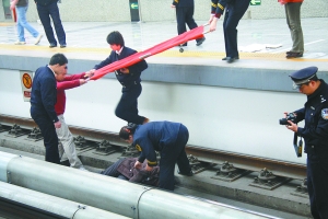 目擊者劉女士稱,墜軌事件發(fā)生在9時30分許,她當(dāng)時正在該站等地鐵,突然聽見刺耳的剎車聲,列車在進(jìn)站口就停下了,一個人臥倒在車前,地鐵員工等聞聲急忙前來救人。