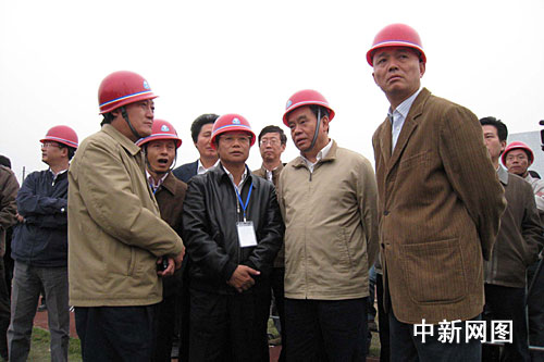 浙江省省長(zhǎng)呂祖善,杭州市市長(zhǎng)蔡奇正在塌方現(xiàn)場(chǎng)聽(tīng)取技術(shù)專家的意見(jiàn)。作者:孫寧亞